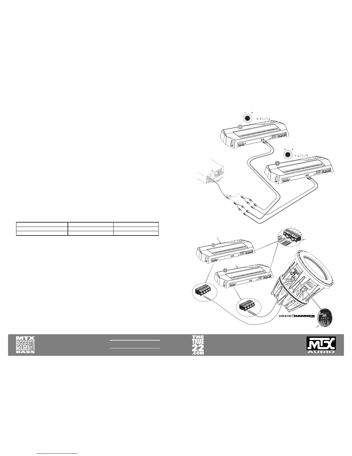 channel confi guration. Think of it like a bridged 2-channel amp which takes a left channel and a right channel