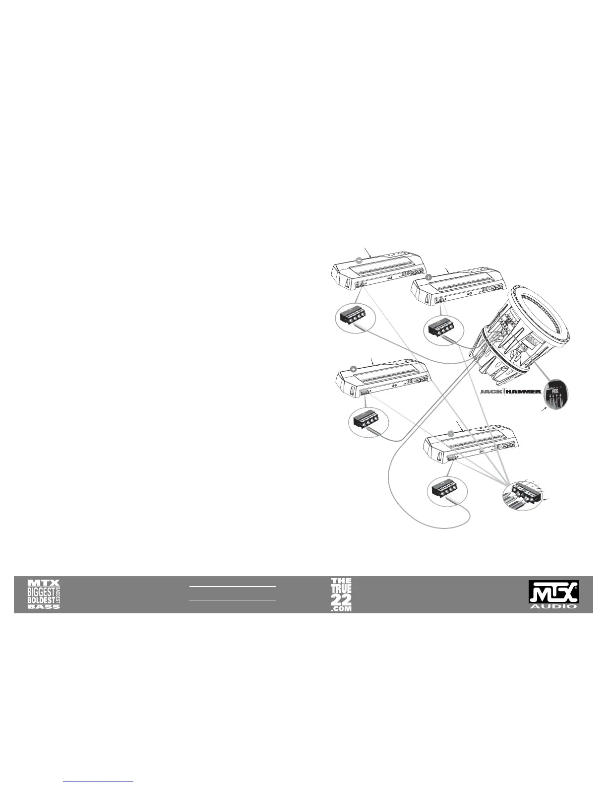 Note: Using two TA81001 amps strapped per voice coil produces a total of over 4,000 watts of RMS power