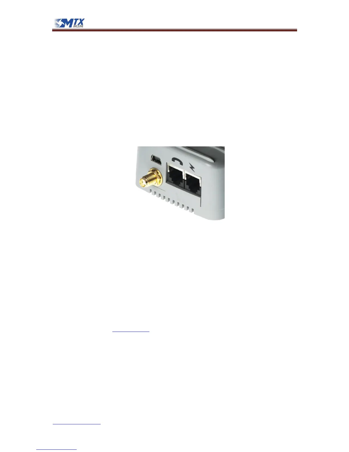 and an external customer-supplied antenna. The modem is fitted with a 50Ω, SMA F coaxial jack.