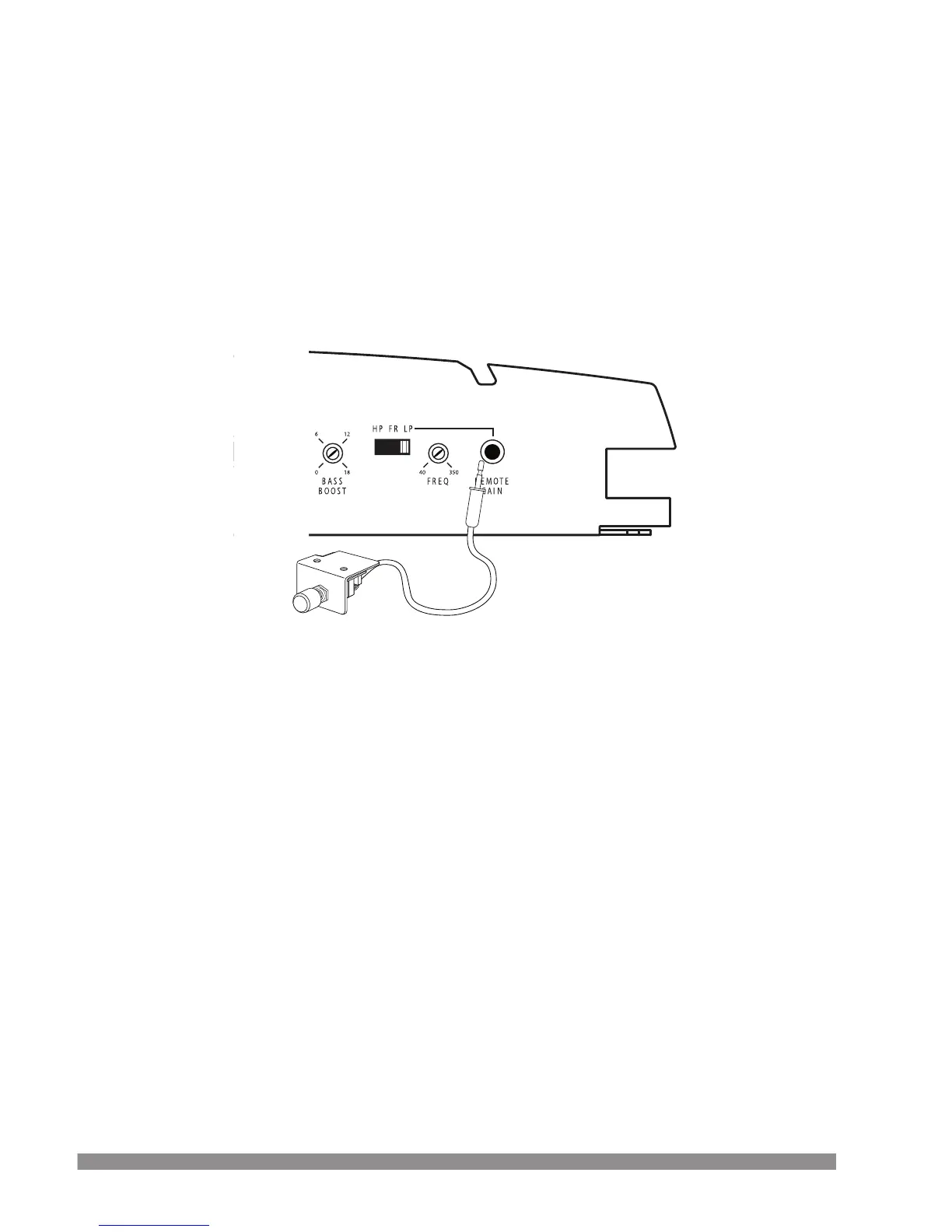 Included is a remote gain control, which is a volume control that is active with the low pass