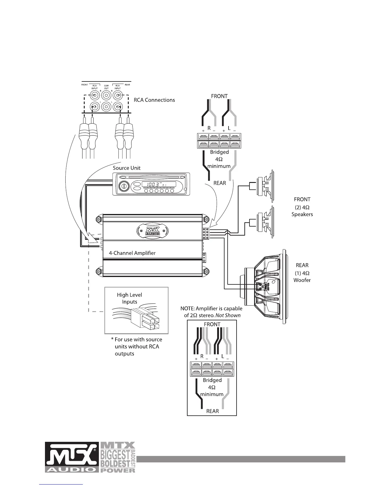 WIRING DIAGRAM (SINGLE 4-CHANNEL AMPLIFIER SYSTEM)