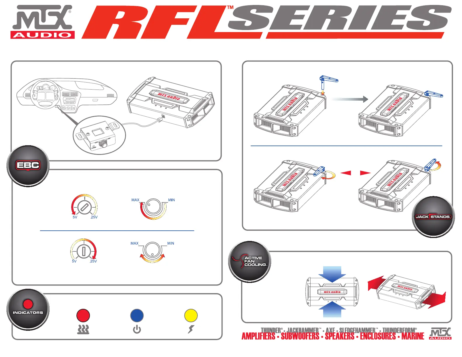 CAUTION: JackStands are designed for stacking a maximum of 3 tiers of RFL Series Amplifiers