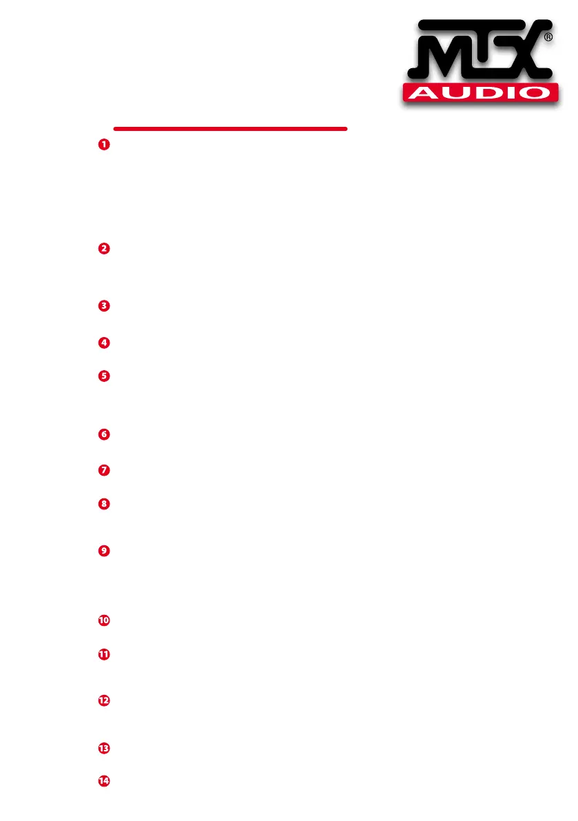 Virta/häiriösuojaus LED : Punainen LED-valo palaa, kun vahvistin on päällä. Jos vahvistin on oikosulussa tai läm-