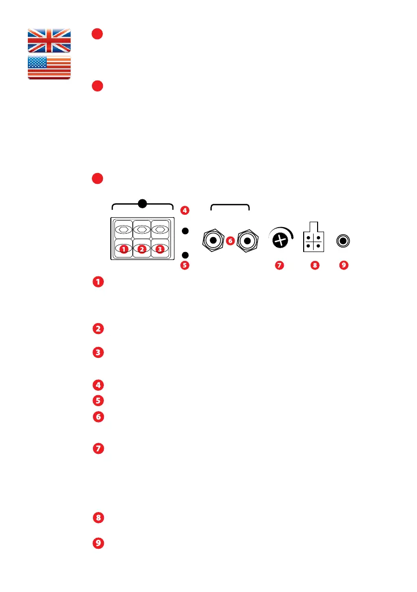 Protection LED (Prot) : When the amp is in thermal protection, the LED turns to red.