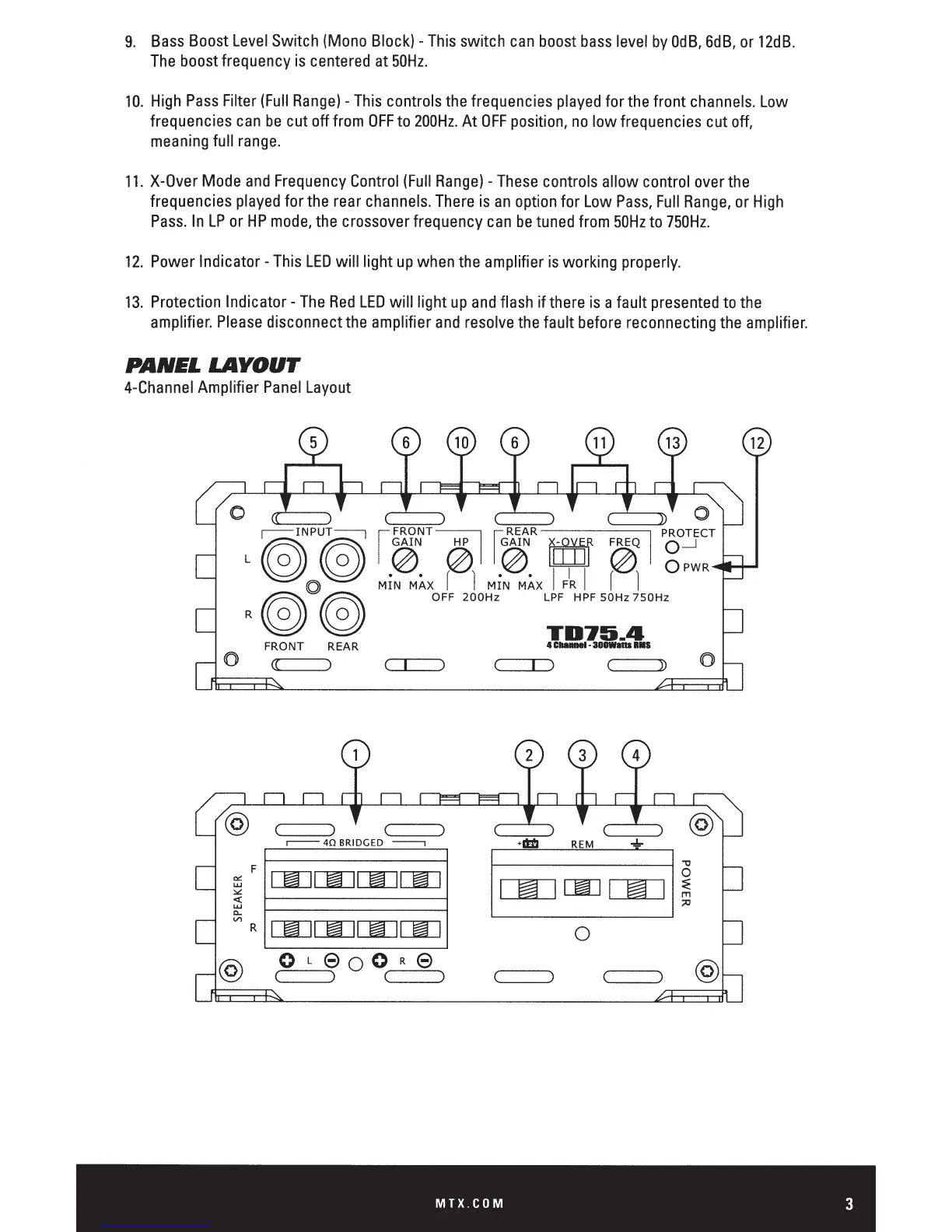 MTX TD1000.1D - Panel Layout; 4-Channel Amplifier Panel Layout