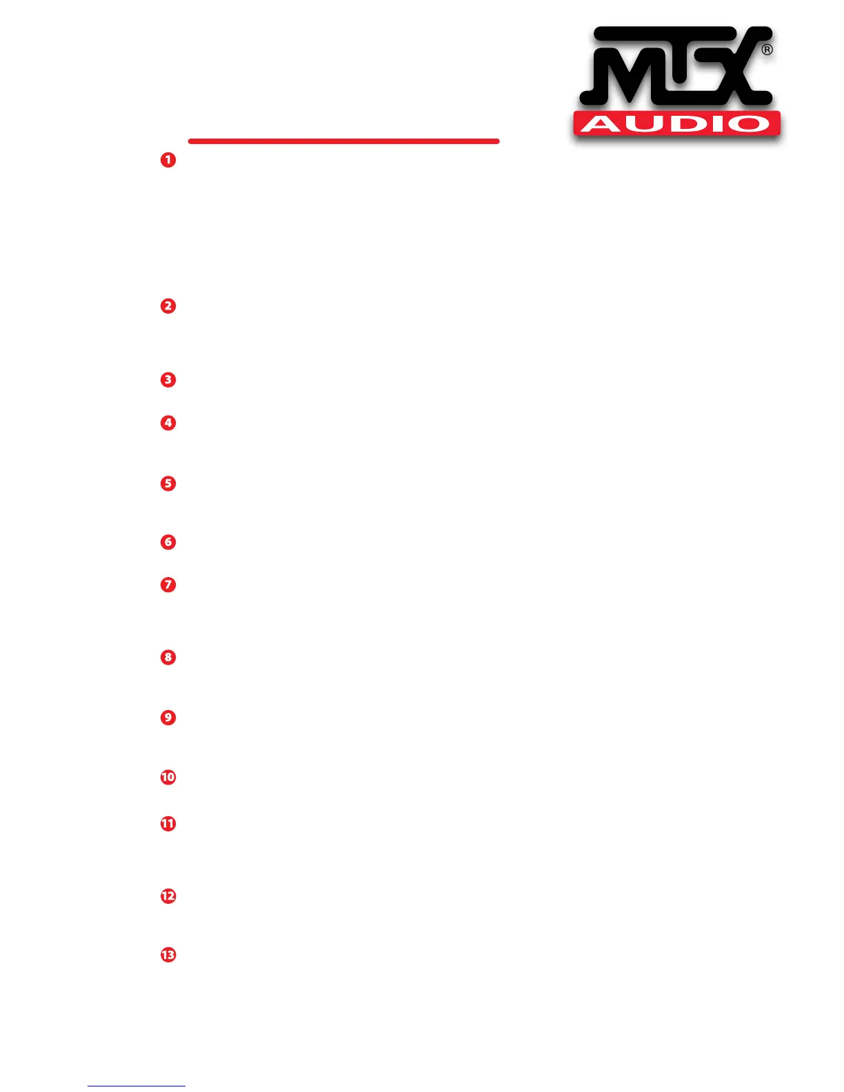 minimum est de 0,1 Volt, le niveau maximum est de 6 Volts. MTX recommande d'utiliser des câbles RCA "twistés"