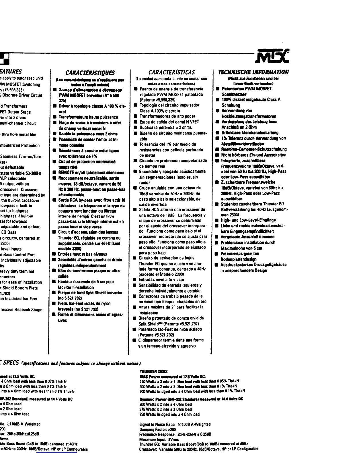 MTX thunder 2300x - Features; Electronic Specs
