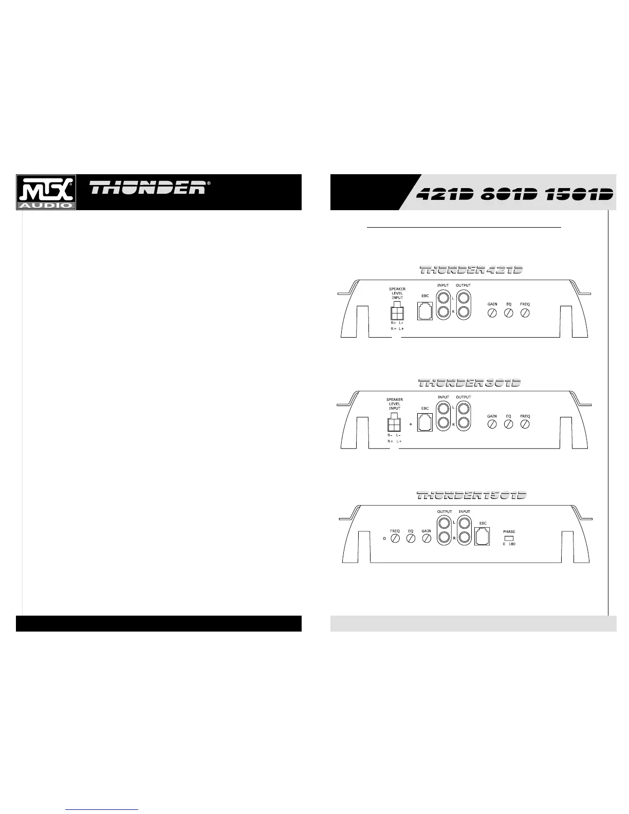 7. Entrées de niveau speaker – Cette entrée permettra à Thunder421D et 801D d’opérer d’unités de source