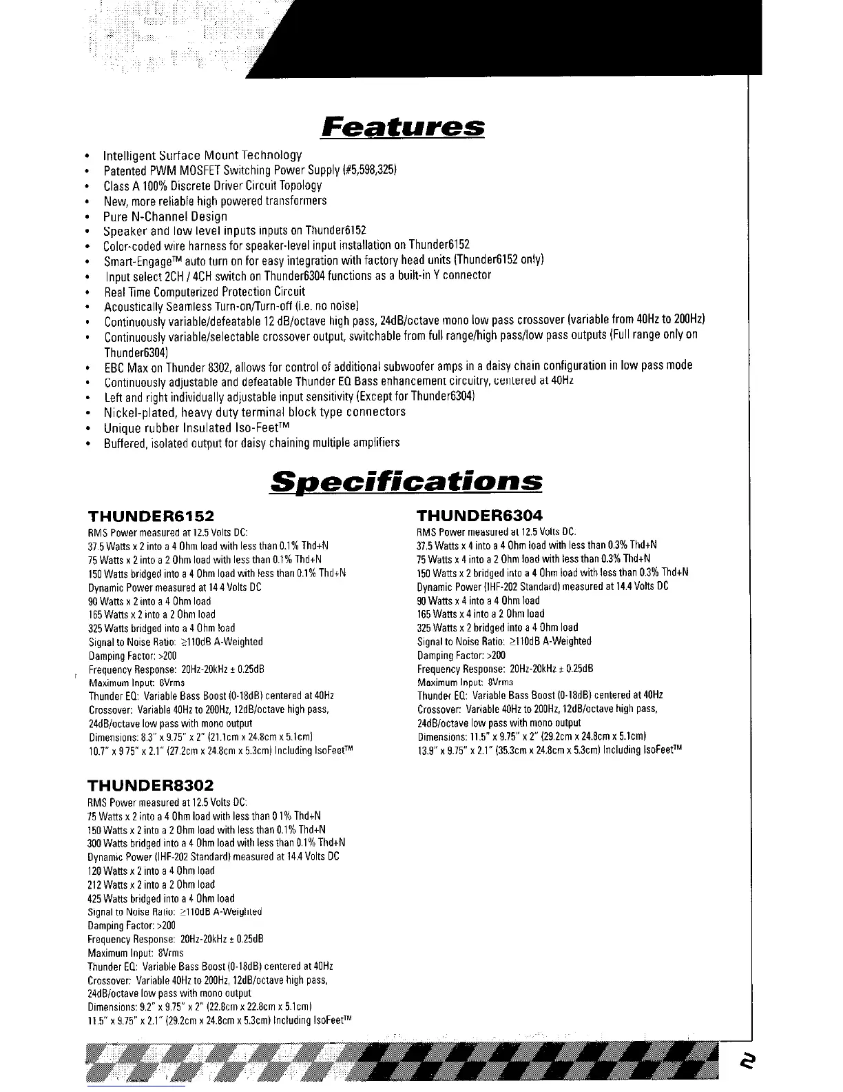 Contlnuouslv adjustable and defeatable Thunder EQ Bass enhancement circuitry, cantered at 40Hz