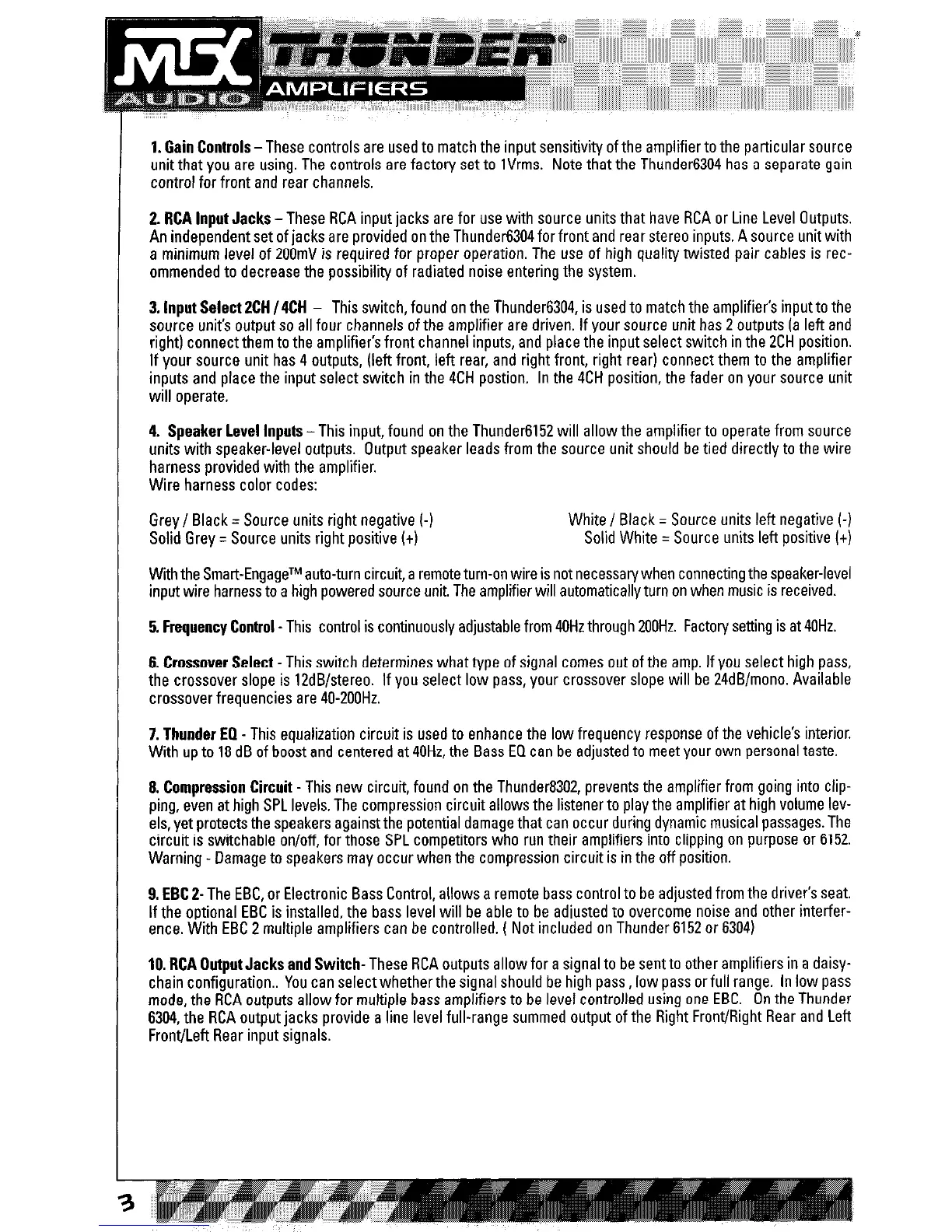 4. Speaker Level Inputs-This input, found on the Thunder6152 will allow the amplifier to operate from source