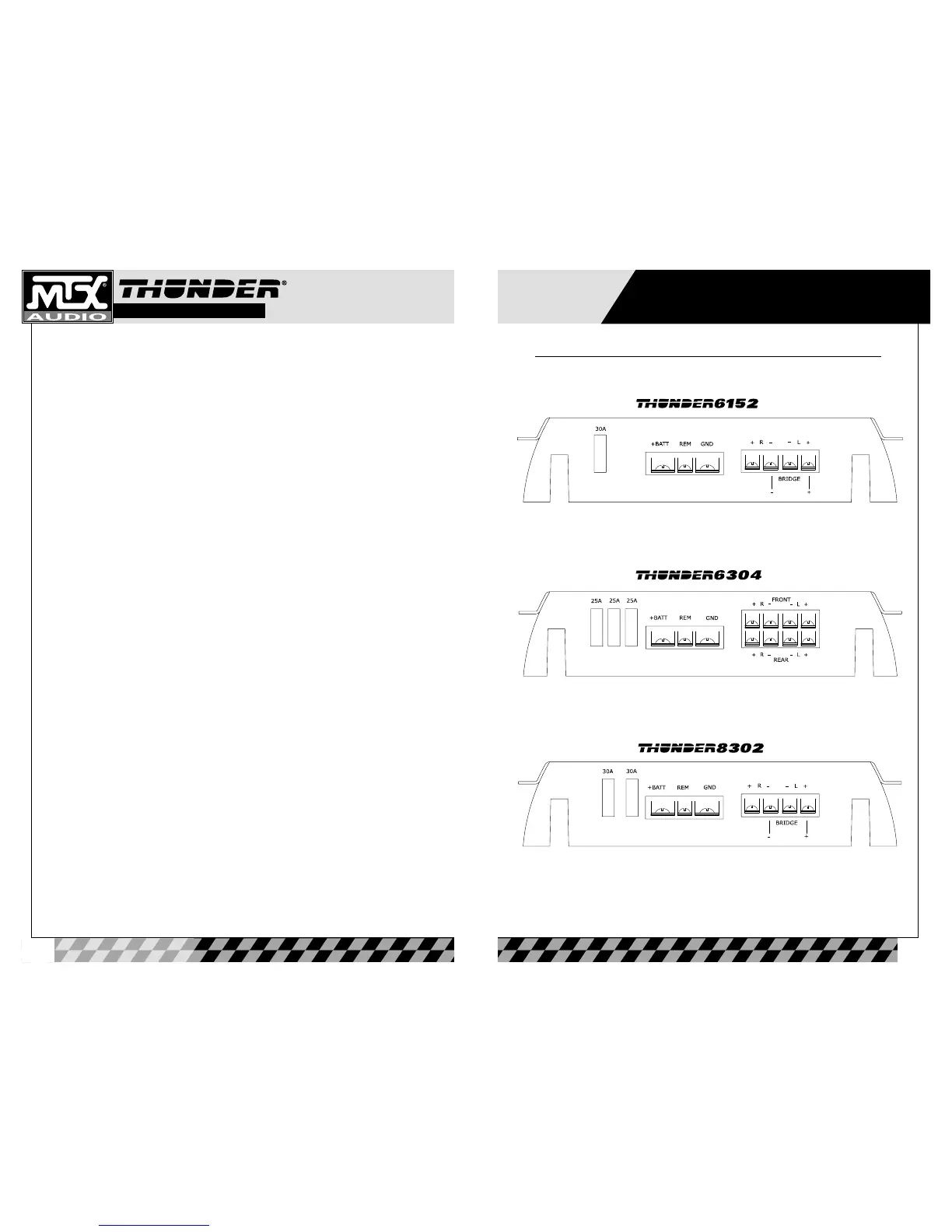 4. Borne à distance – Tous les amplis Thunder sont mis en marche en appliquant 12 V à cette