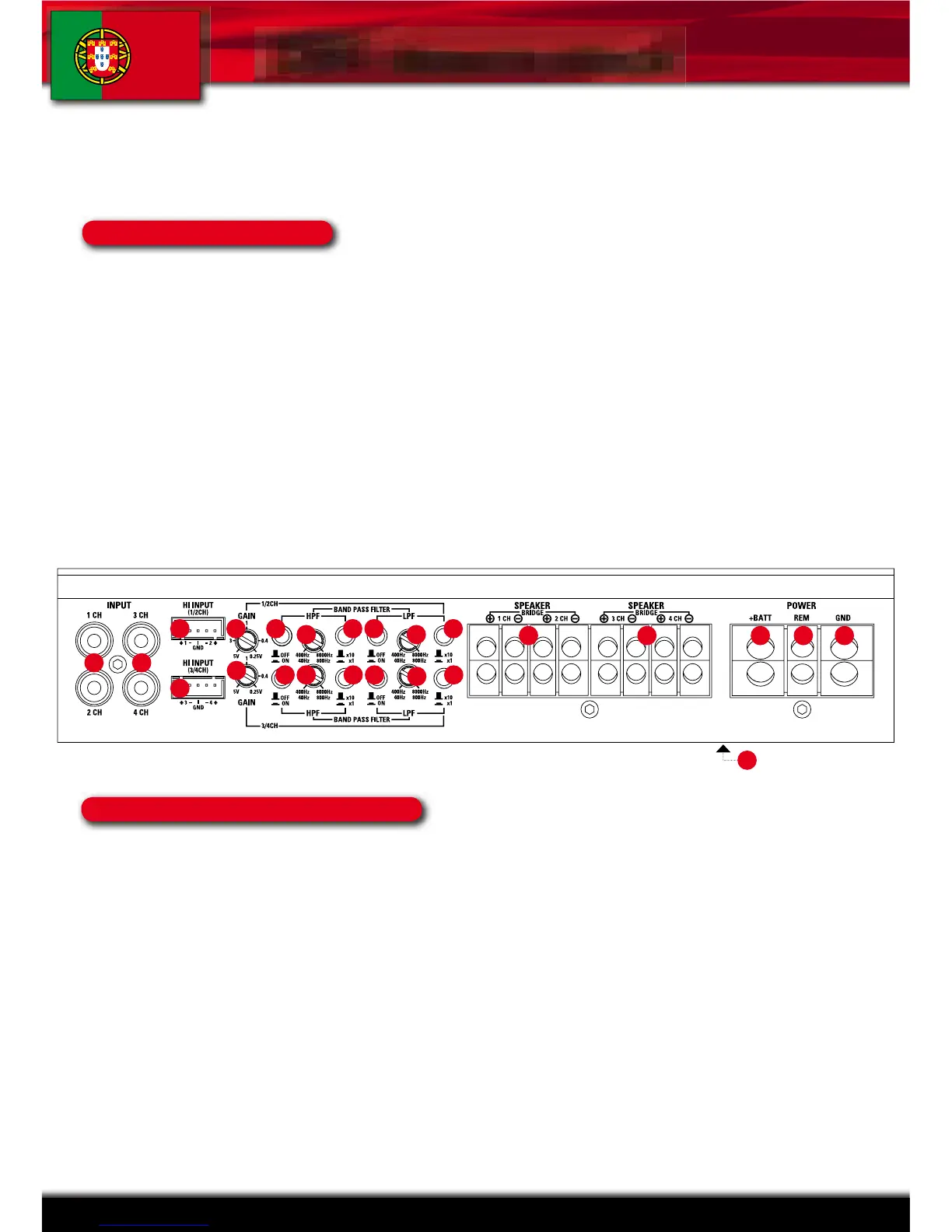 2. Entradas de alto nível– Estas entradas permitem a ligação a saídas de altifalante de unidades fonte. Saídas de