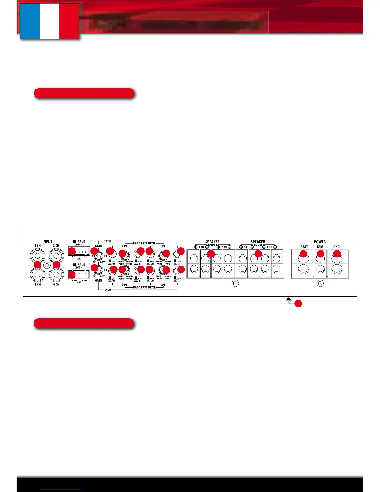 2. Entrées haut niveau – Ces entrées permettent de connecter votre amplificateur aux câbles haut-parleur qui