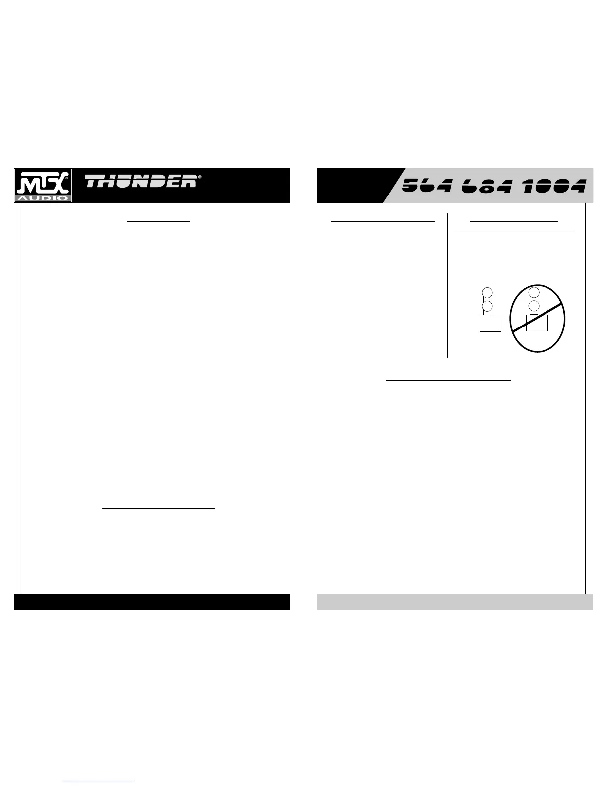 8. Connect your speakers to your Thunder amplifier’s speaker terminals using 12 gauge minimum speaker