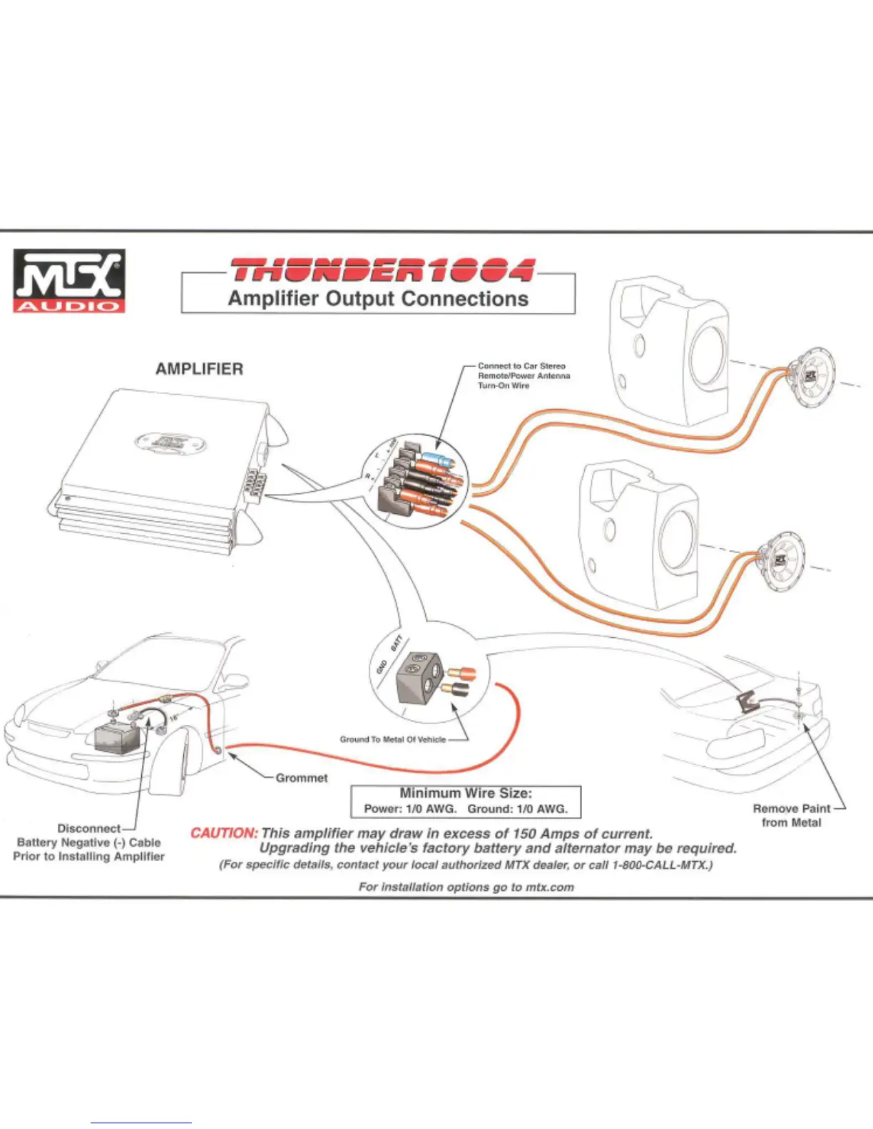 MTX Thunder - Amplifier Output Connections Diagram; Power and Speaker Wiring; Wire Gauge Recommendations