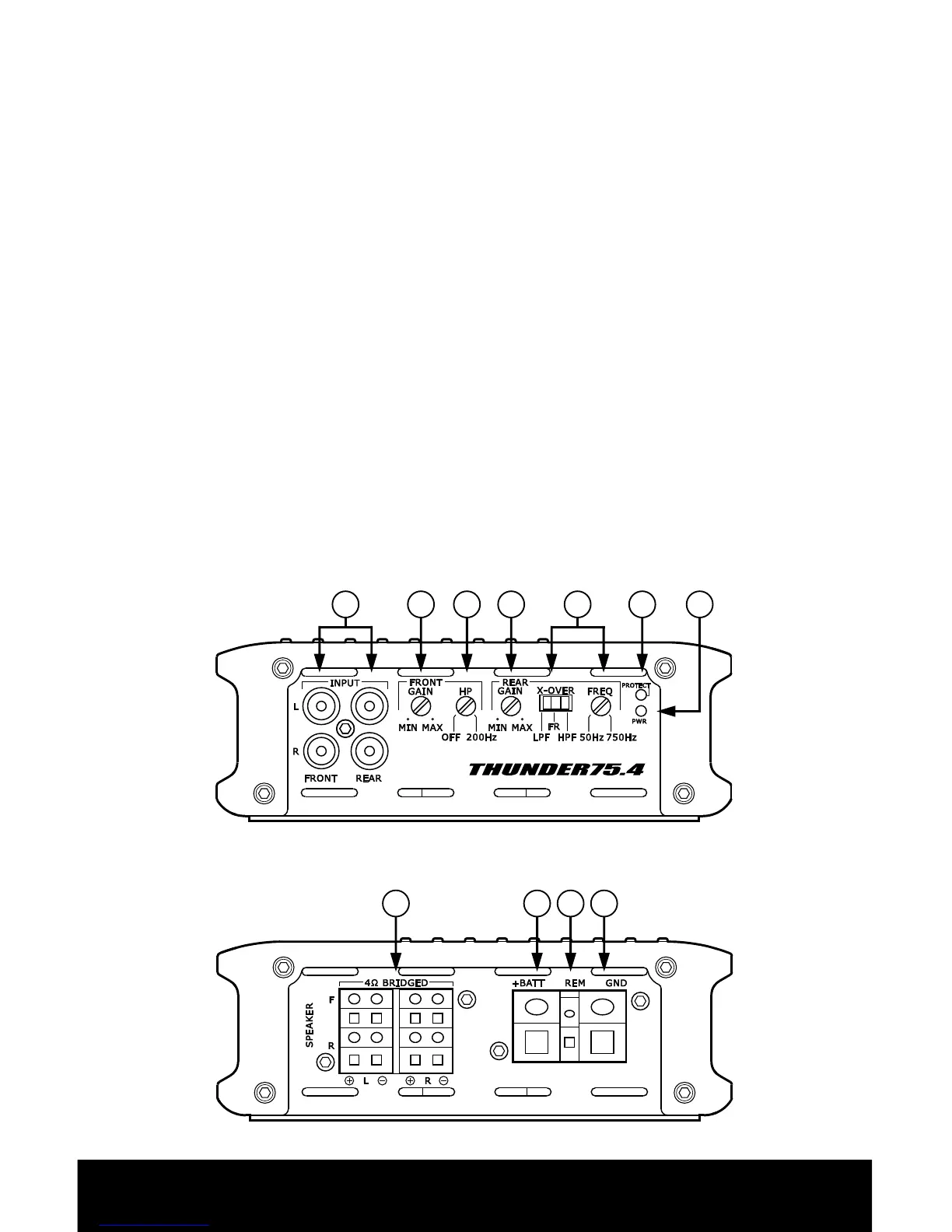 Disposition du panneau de l’amplificateur 4 canaux