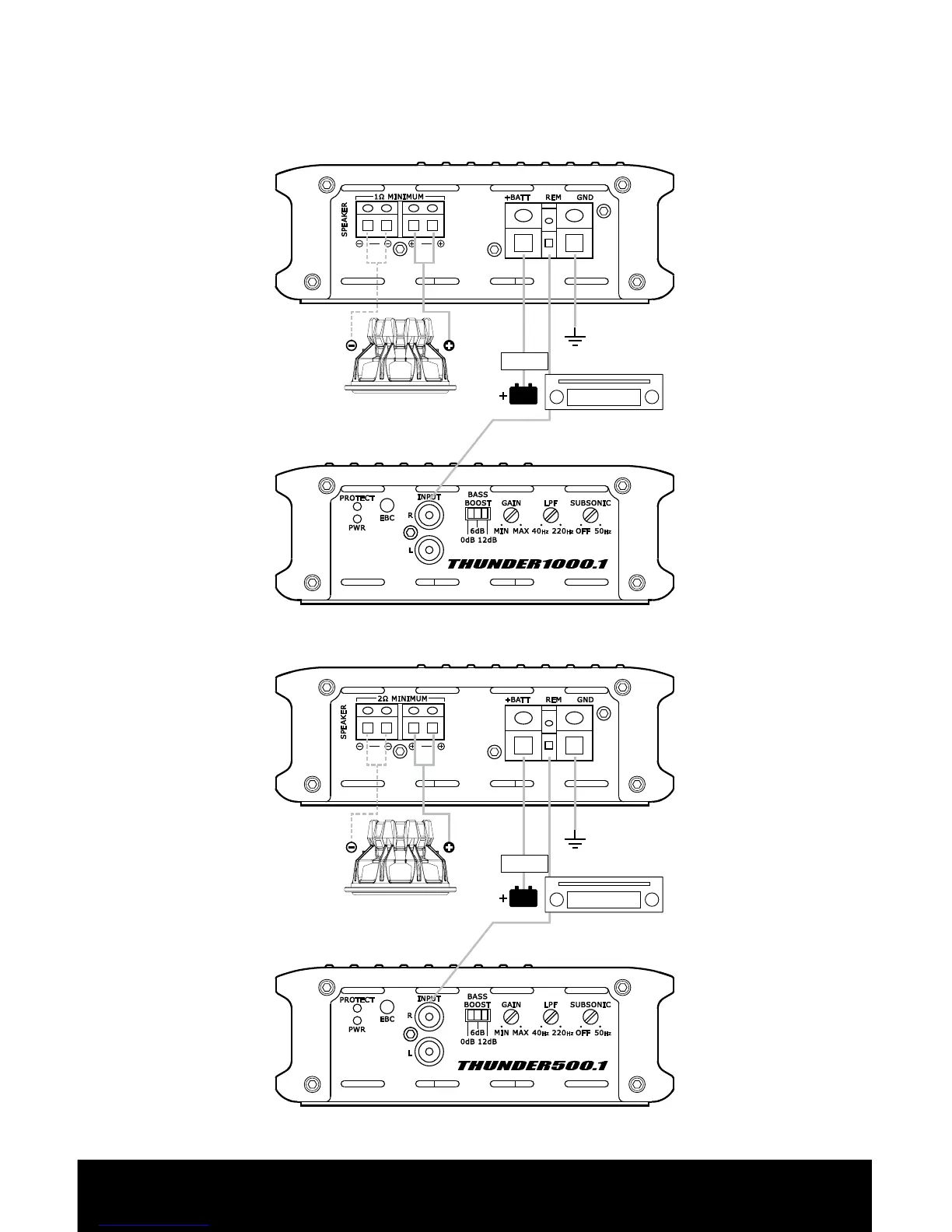 MTX THunDer1000.1 - Wiring Diagram - Mono Block Single Subwoofer; Mono Block Wiring - Single Subwoofer