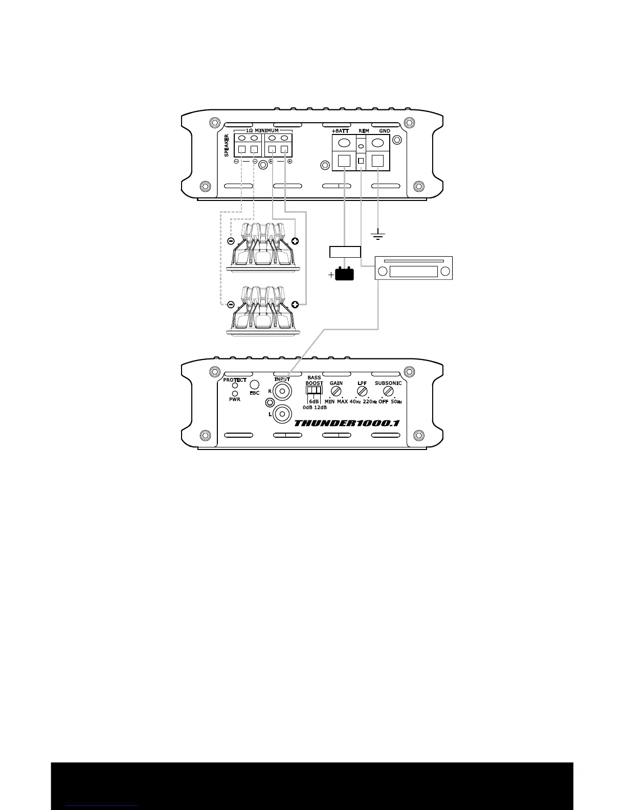mínima do amplificador THUNDER500.1 é 2Ω. A carga mínima do amplificador THUNDER1000.1 é 1Ω.
