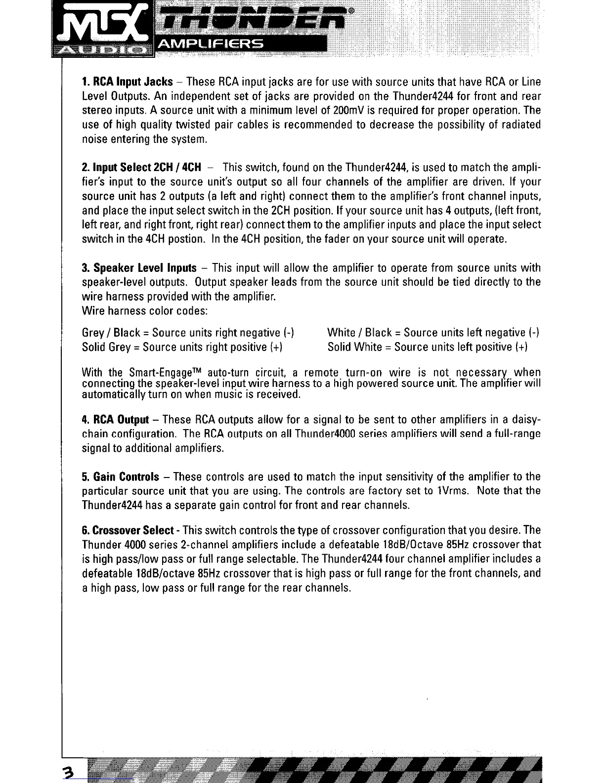 is high pass/low pass or full range selectable. The Thunder4244 four channel amplifier includes a