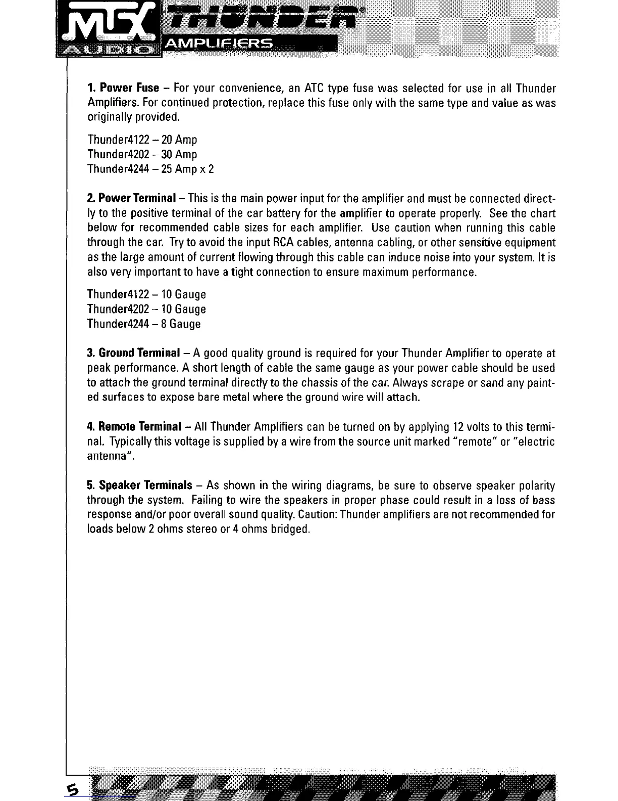 4. Remote Terminal - All Thunder Amplifiers can be turned on by applying 12 volts to this termi-