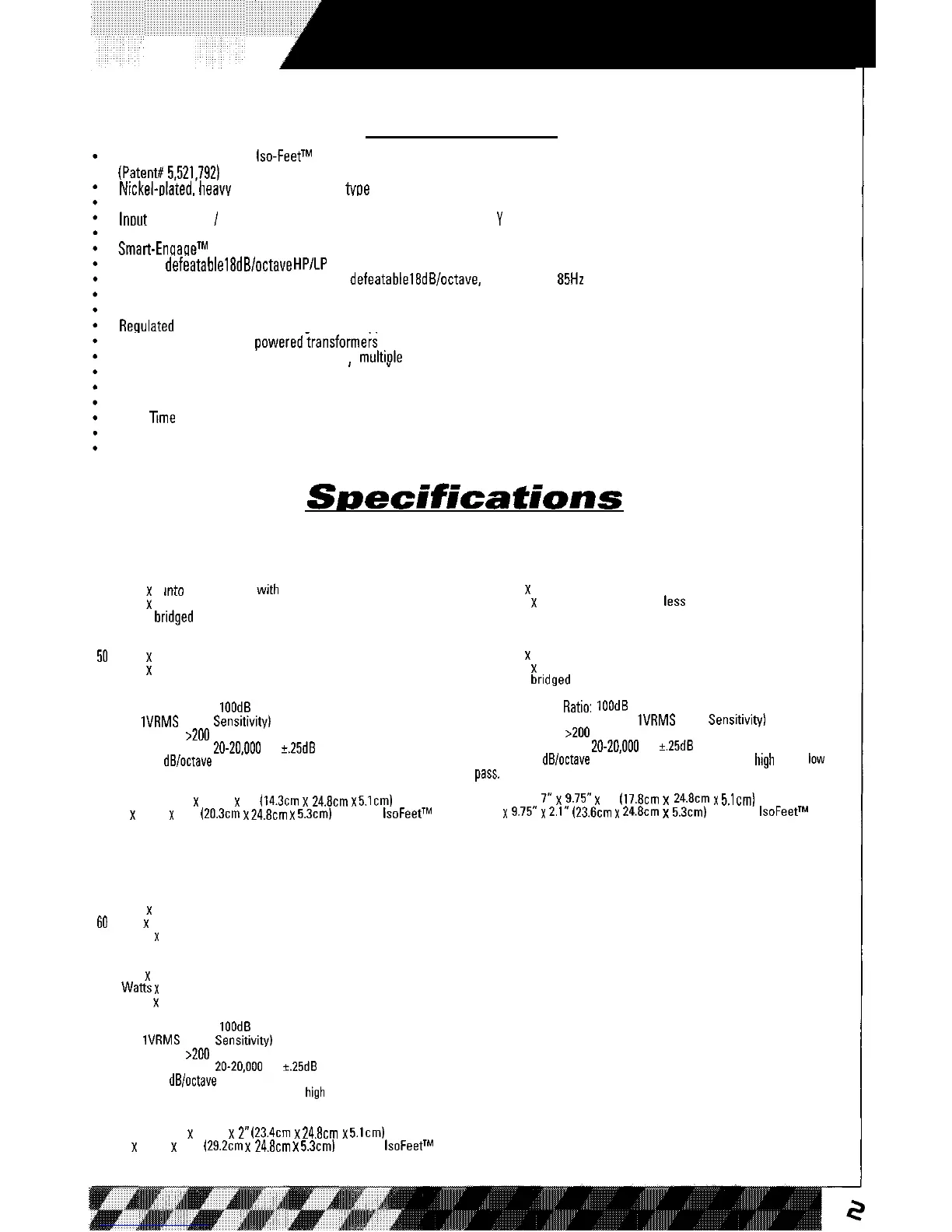 Defeatable 18 dB/octave crossover at85 Hz. selectable for high pass. low