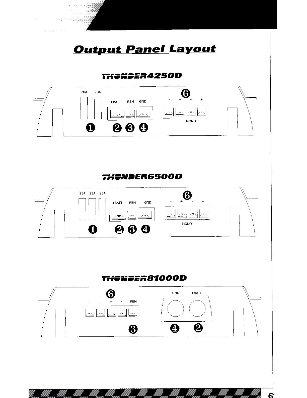 MTX Thunder4250D - Output Panel Diagrams; THUNDER4250 D Output Panel; THUNDER6500 D Output Panel; THUNDER81000 D Output Panel