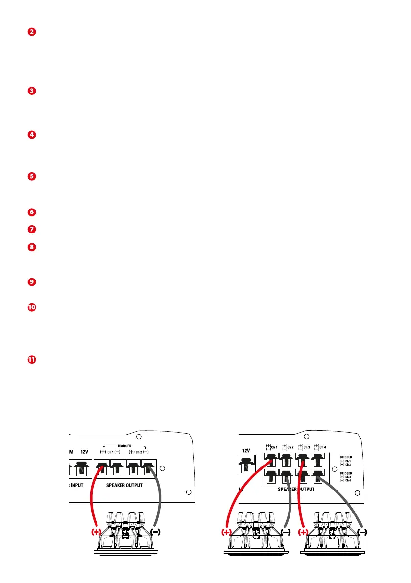 +12V Power Terminal (12V) - Dies ist der Stromanschluss des Verstärkers. Dieser muss – um einen optimalen Betrieb sicherzustellen – direkt