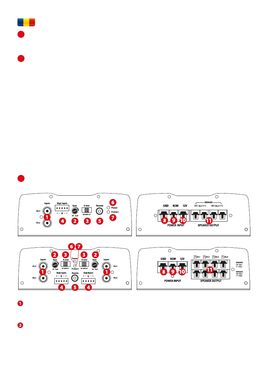 RCA Intrări (Inputs) : Aceste intrări RCA sunt utilizate cu unităţi centrale, care au RCA sau nivel de linie iesiri (unităţile centrale au nevoie de un