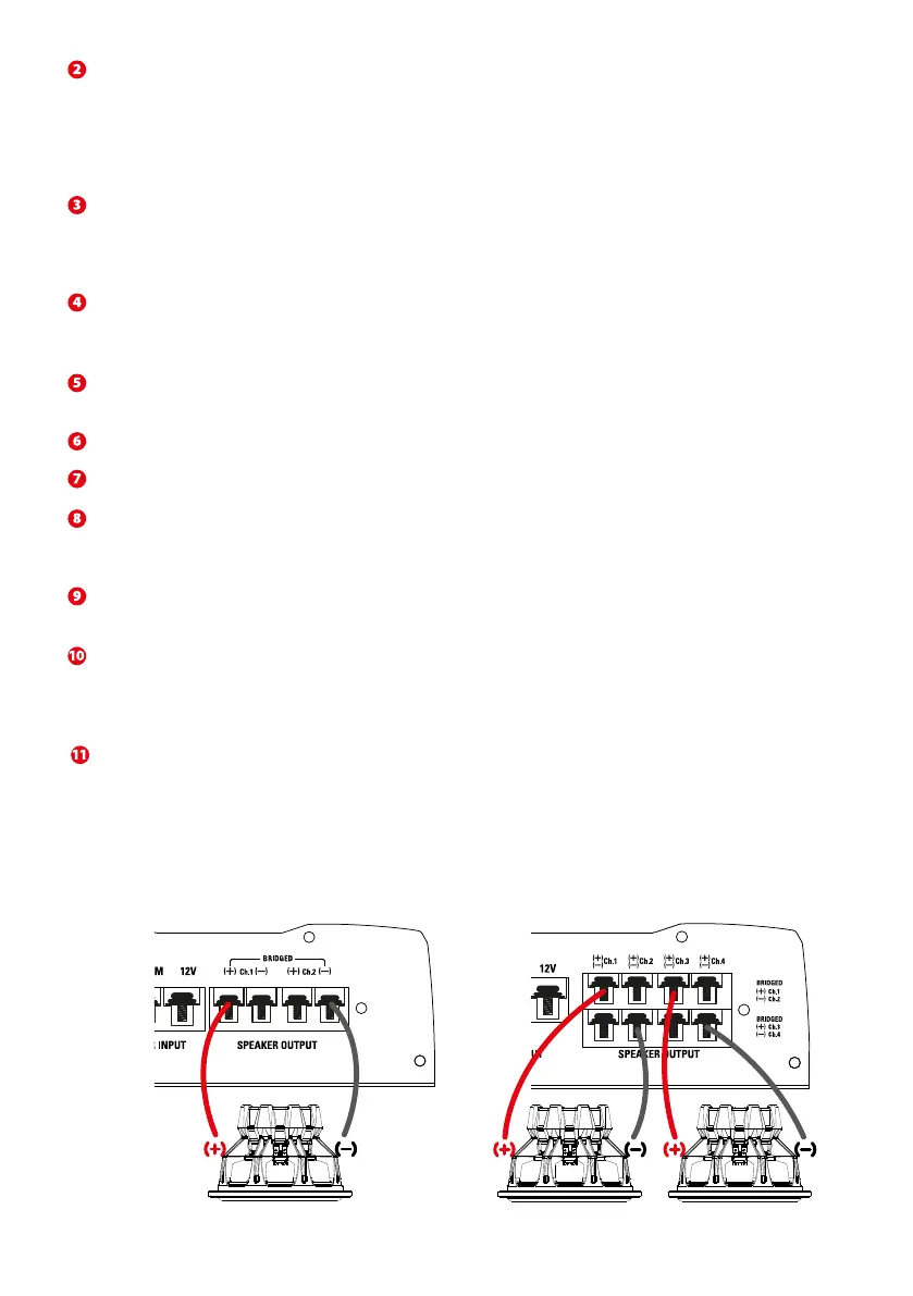 TR450: Lors du pontage, pour les deux premiers canaux, utilisez la borne positive Ch.1 et la borne négative Ch.2. Pour les deux canaux suivants,