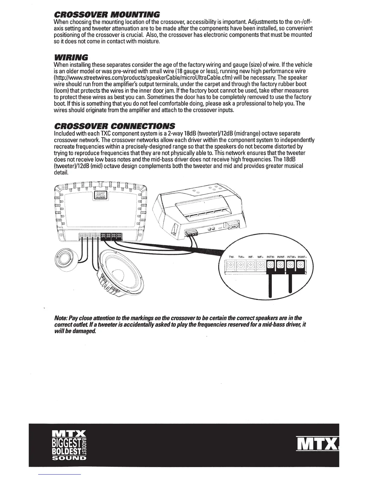 MTX TXC6.1 - CROSSOVER MOUNTING; WIRING; CROSSOVER CONNECTIONS