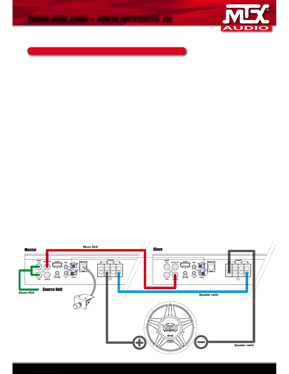 **Bemerkung: Der "Slave"- Verstärker wird nicht über die RCA Eingänge angeschlossen. Der "Slave"-Verstärker
