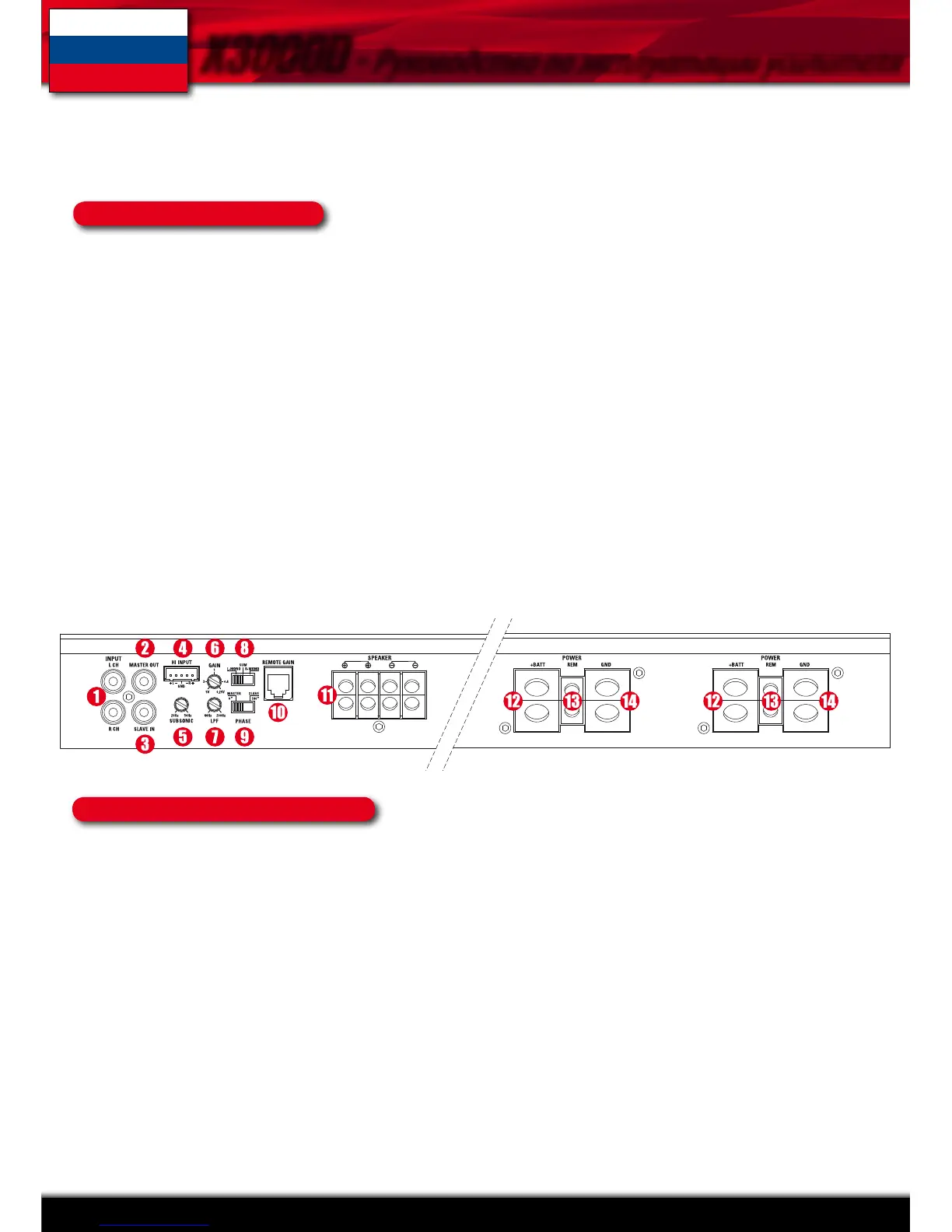 2. RCA разъем ”Master” – Используйте разъем ”Master” при соединении двух усилителей X3000D. (см. раздел ”Соединение двух