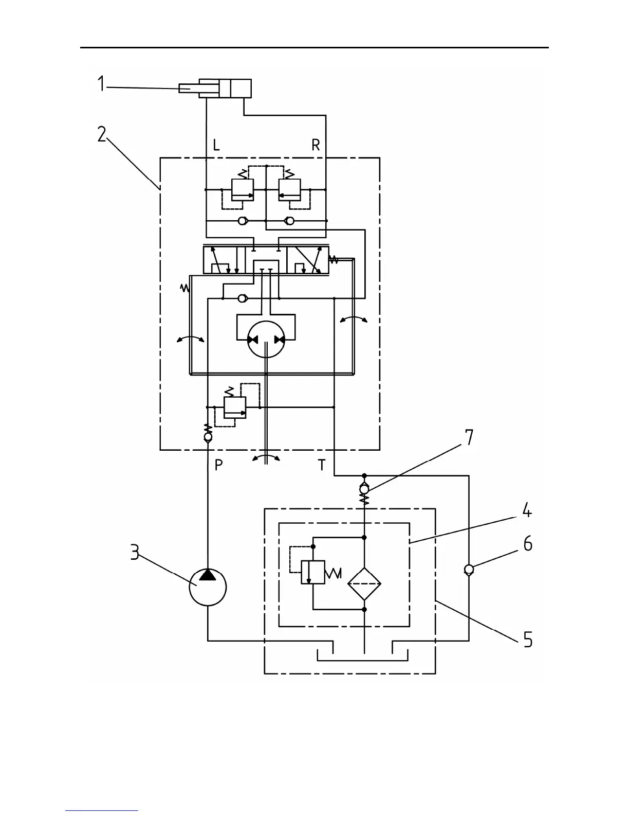 Designation: L – left turn; R –right turn; P – pressure line; T – delivery to the oil tank