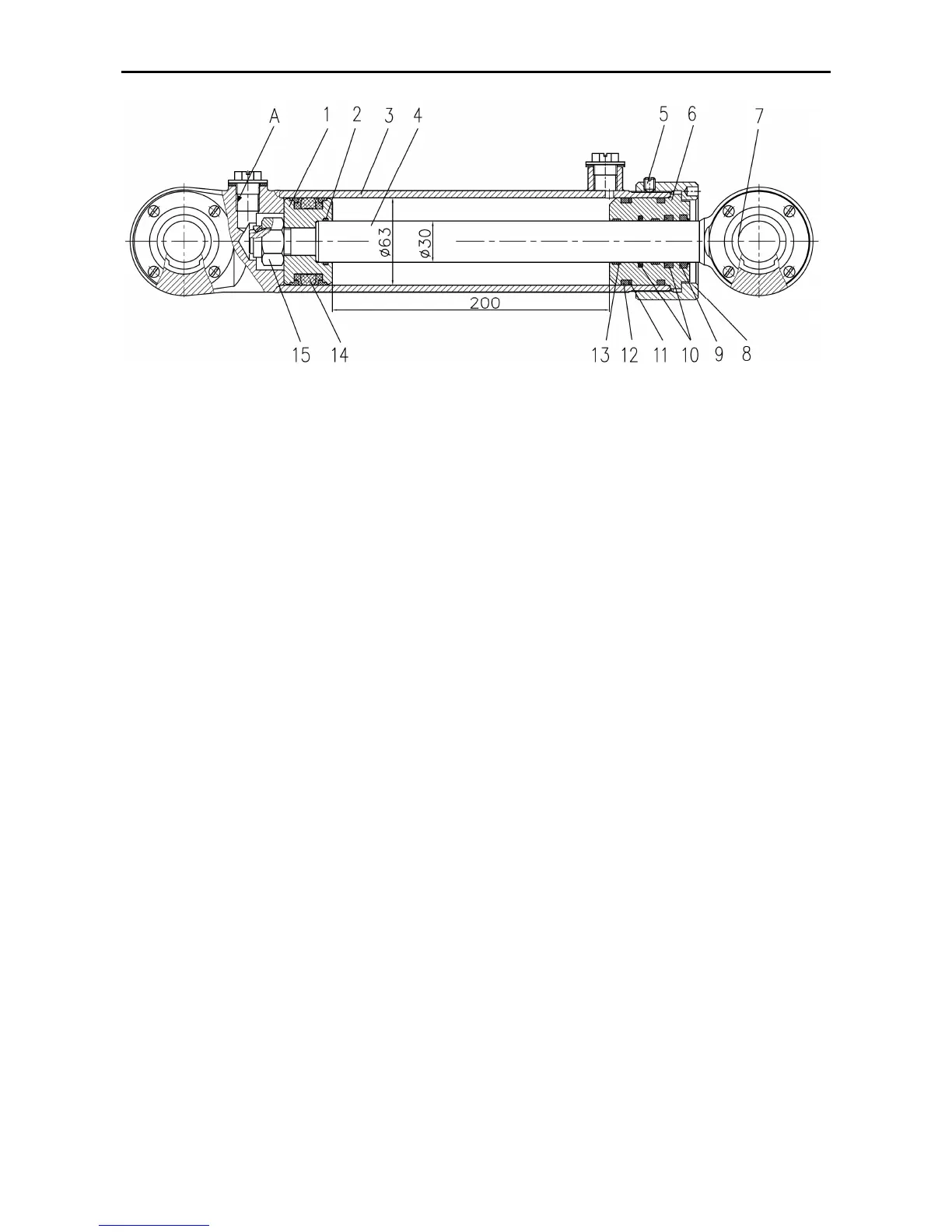 8 – cap nut; 9 – rod collar; 10 – rod seal; 11 – protective ring, 13 – rod guide, 14 – piston seal; 15 –