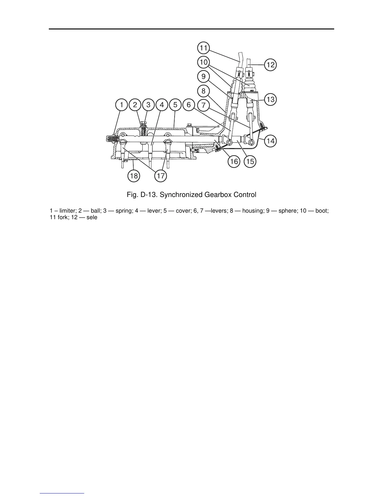 11 fork; 12 — selector fork; 13 — spring; 14 — cover; 15, 16 — shafts; 17 — lever; 18 - link.