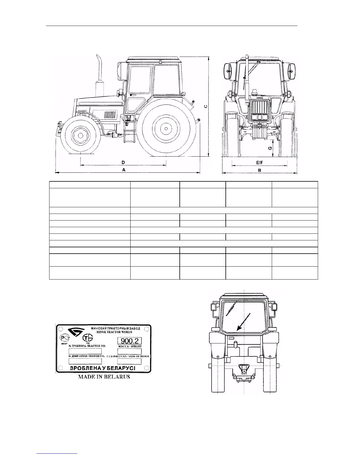Name plate of the tractor containing the