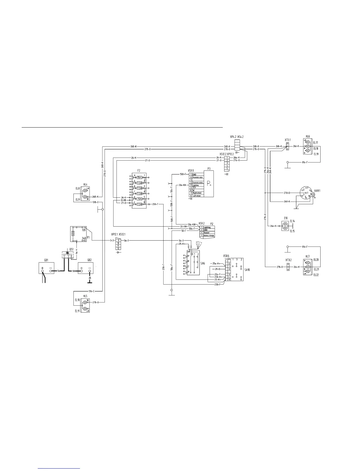 Connection diagram of the clearance lamps, number plate lights and instruments