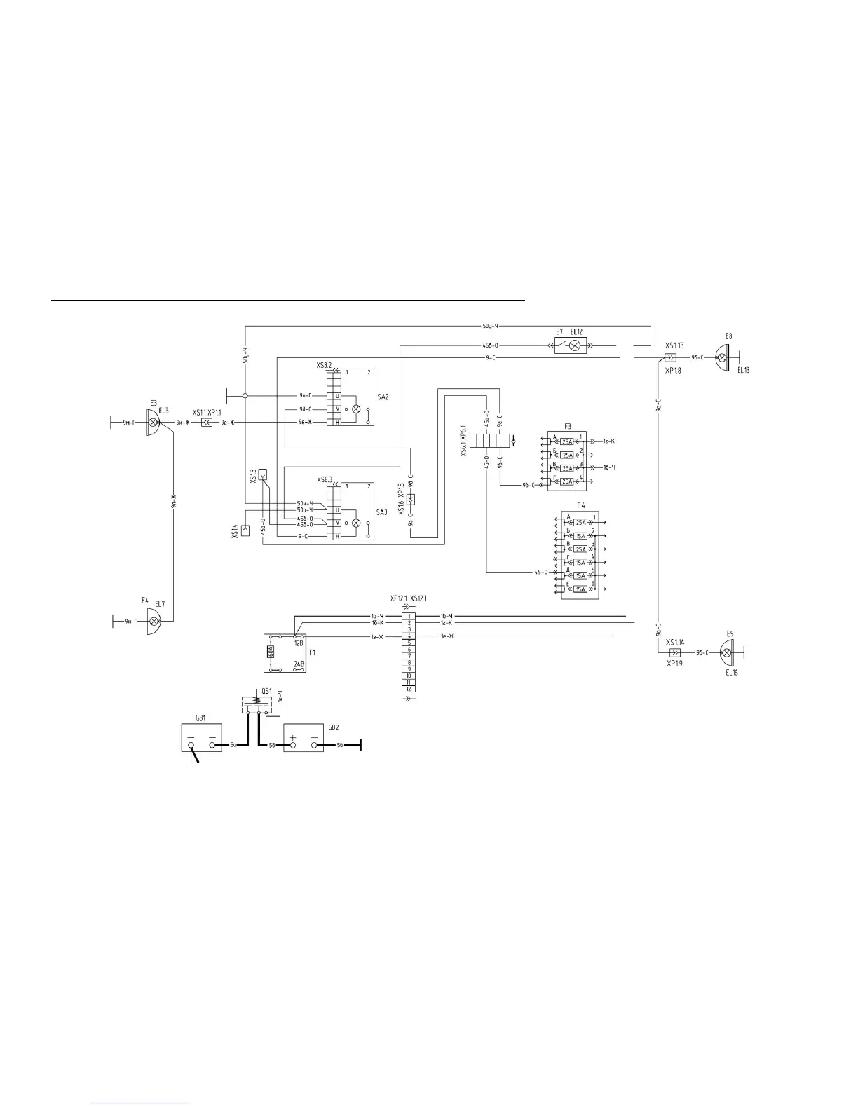 Connection diagram of the front and rear working lights and cab lighting lamp