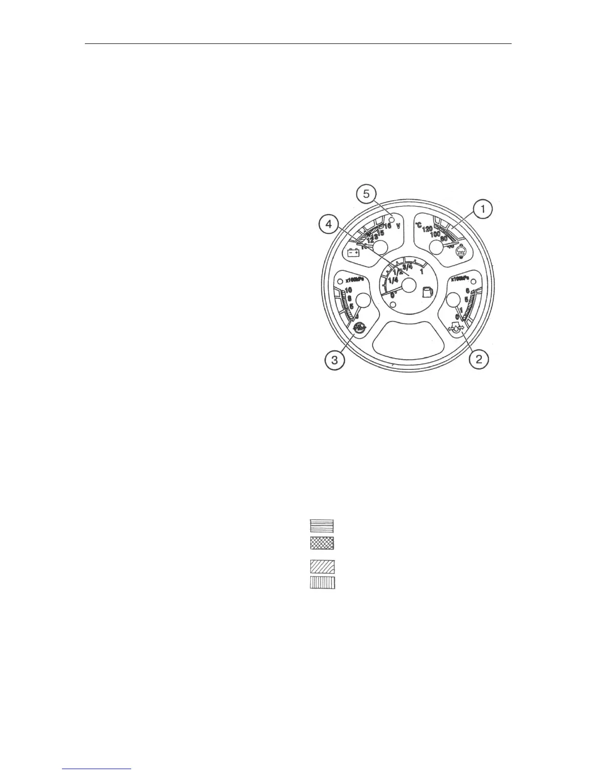 gauges (1, 2, 3, 4, 5) monitoring the various