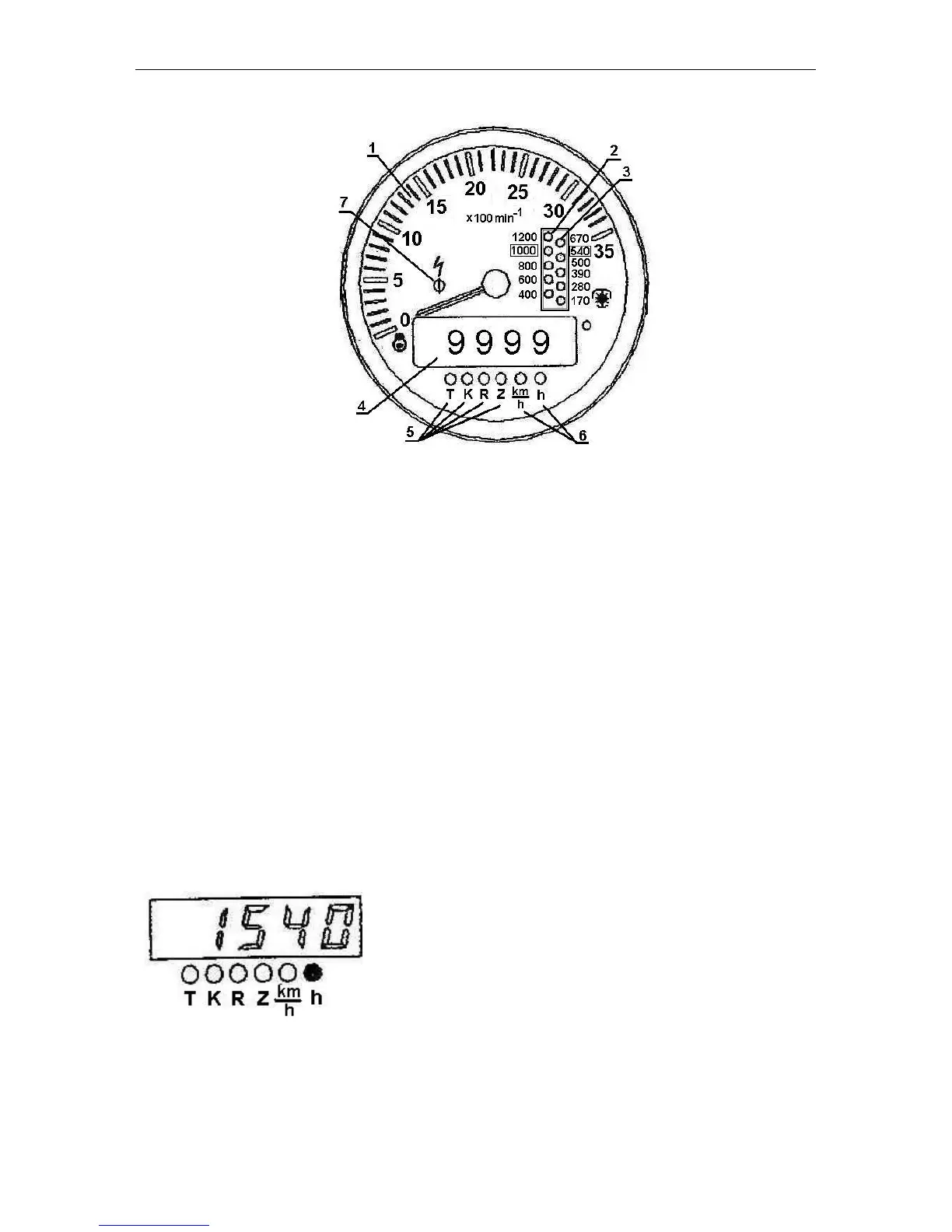 1 – Engine rotational speed indicator (pointer indicator).