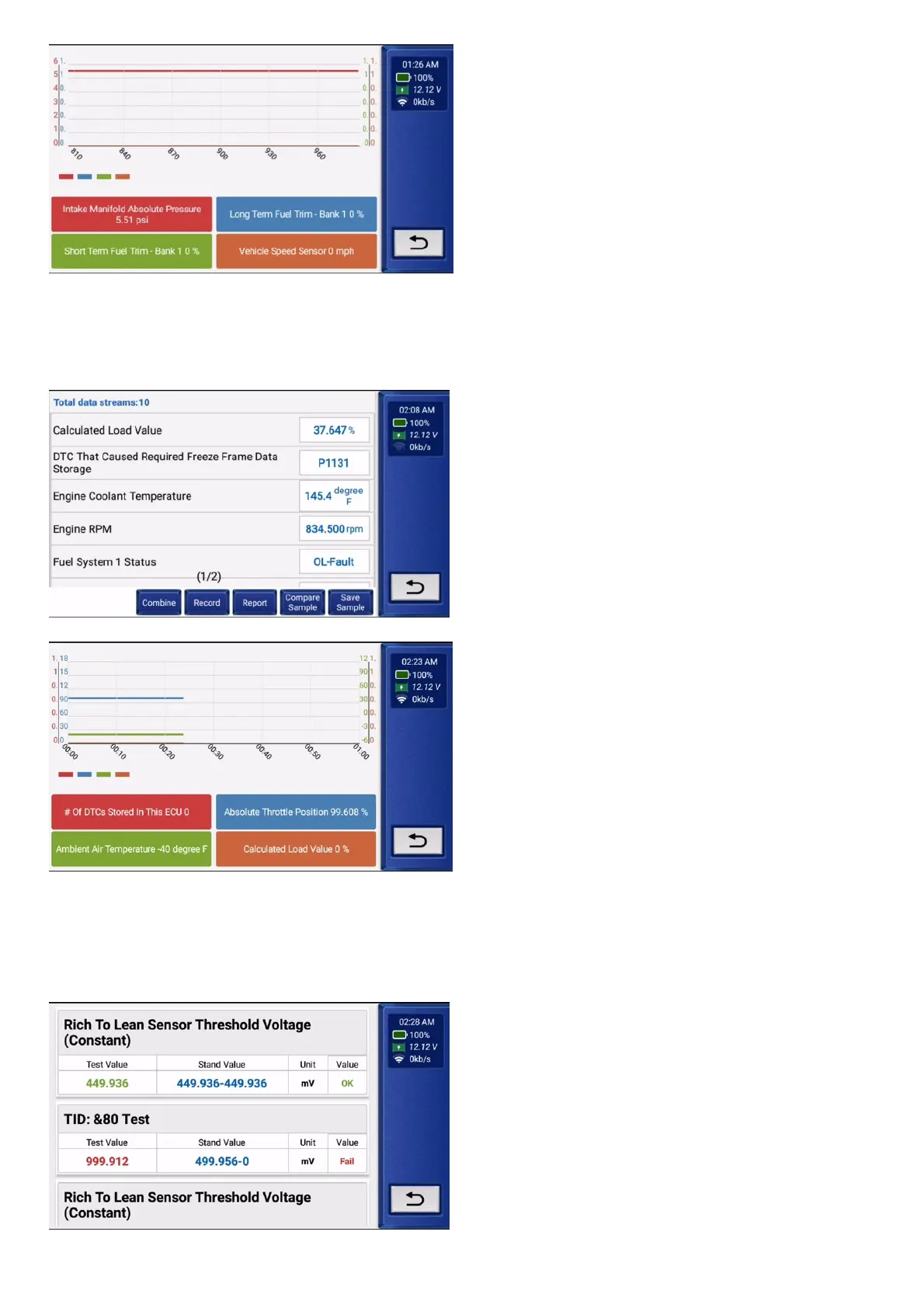 4.6.6 Select "O2 Sensor Test" and click "OK" to view the O2 Sensor data flow.