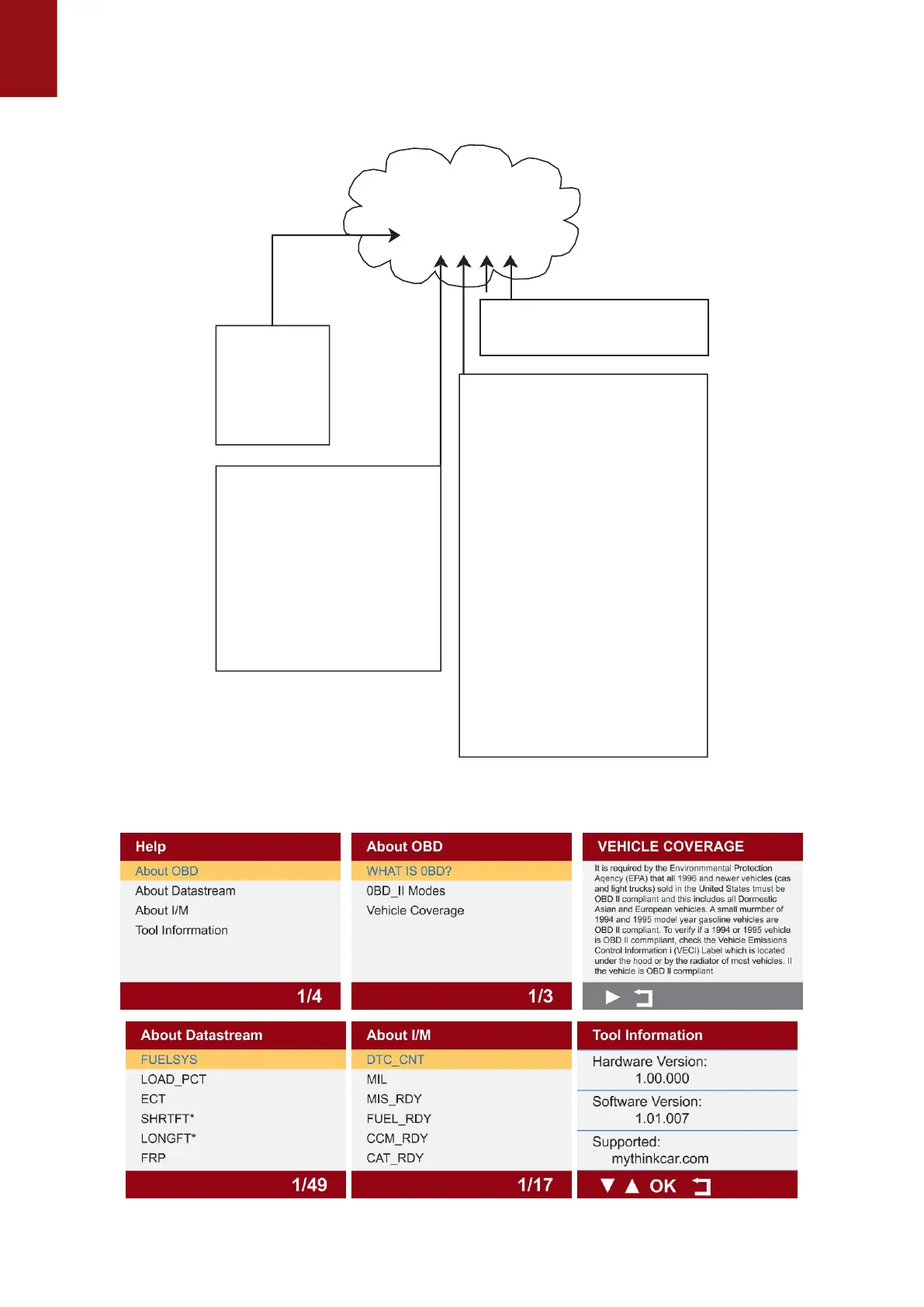 3.1 Select "Help" and click "OK". You will find the device OBD function and system