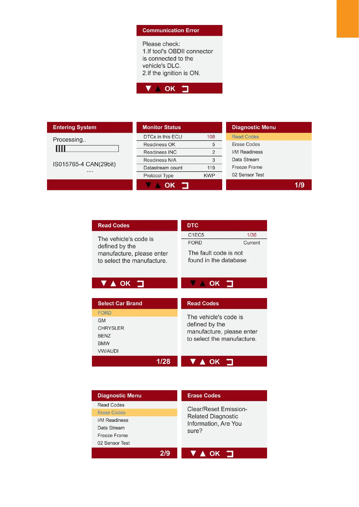 1.2 Sélectionnez « EFFACER LES CODES » pour effacer le code d'erreur.