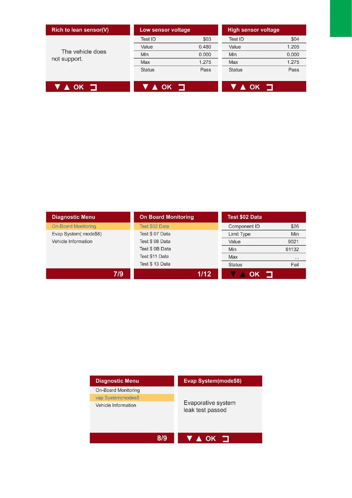 sie über das Menü ausgewählt werden, aber getestet, wenn die Motorbetriebsbedingungen