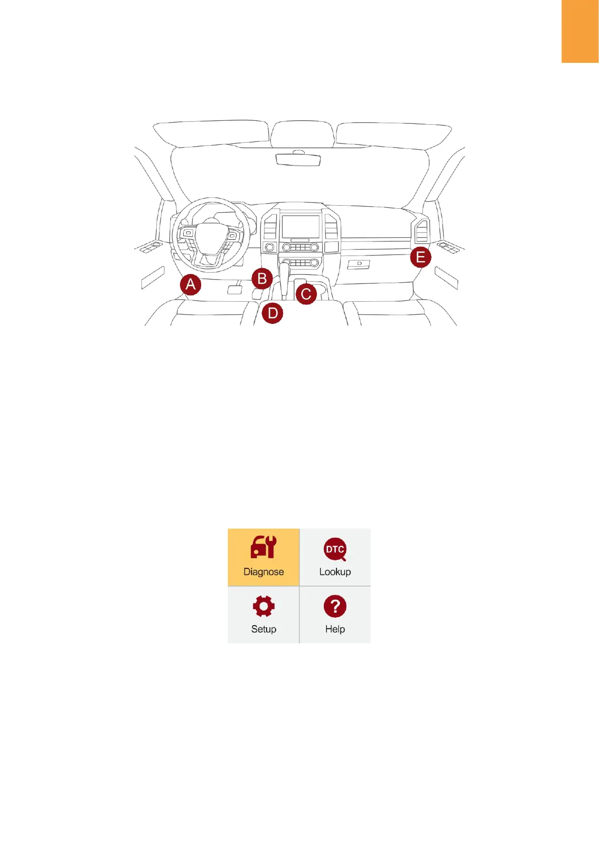 ● Diagnóstico: conduce a pantallas OBDII para las 9 pruebas genéricas del sistema OBD.