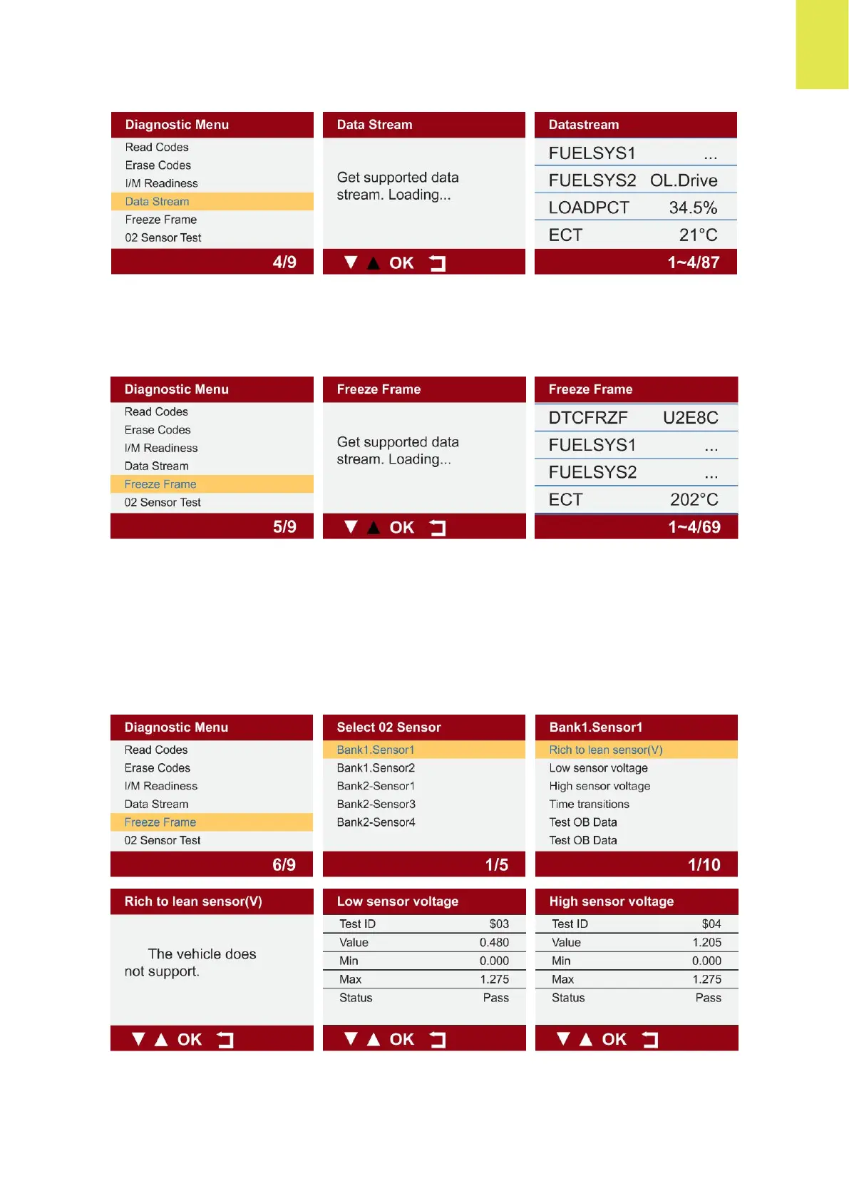 1.6 Selezionare "TEST SENSORE O2" e fare clic su "OK" per visualizzare il flusso di dati
