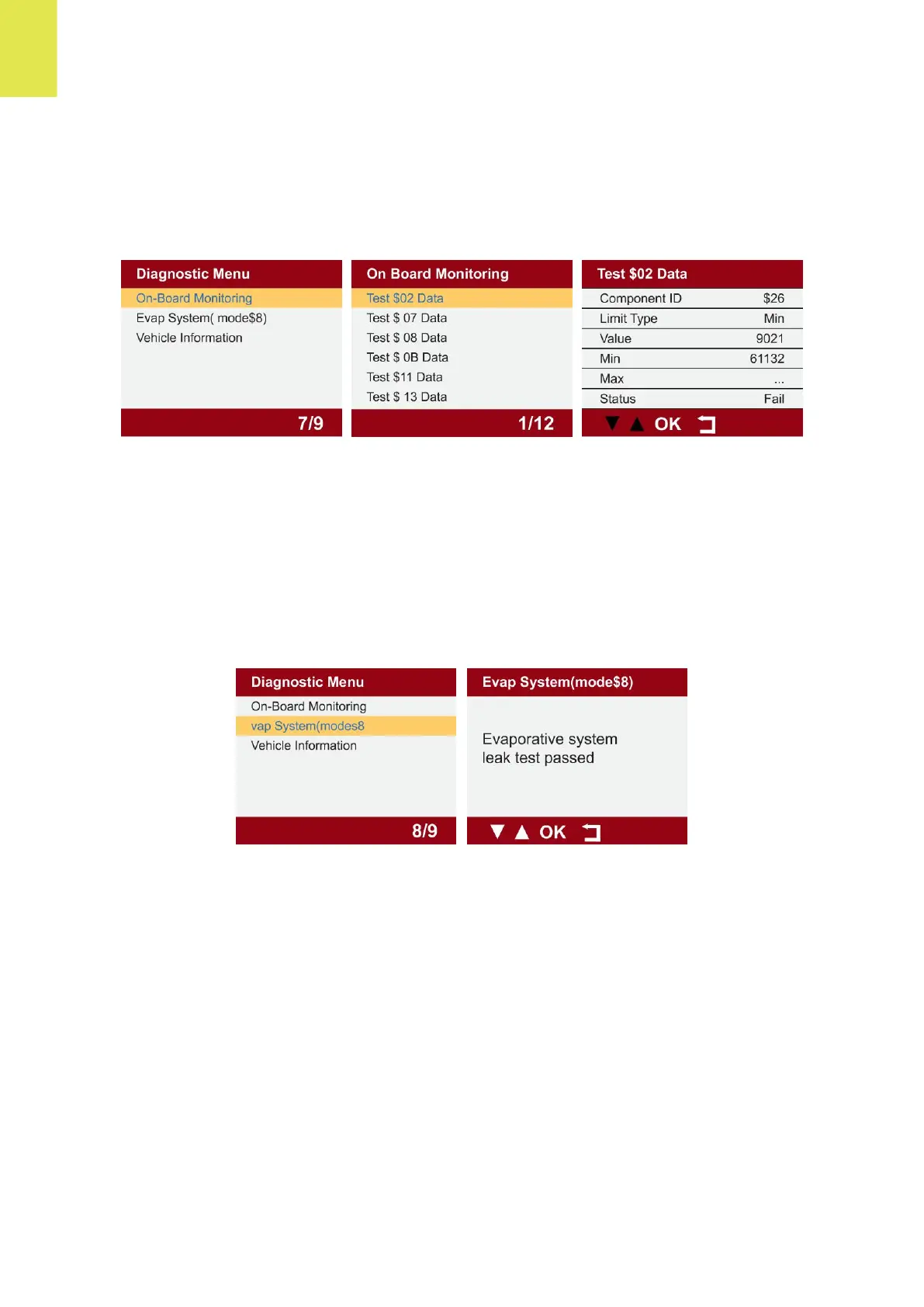 1.8 Selezionare "SISTEMA EVAP" e fare clic su "OK" per visualizzare i flussi di dati