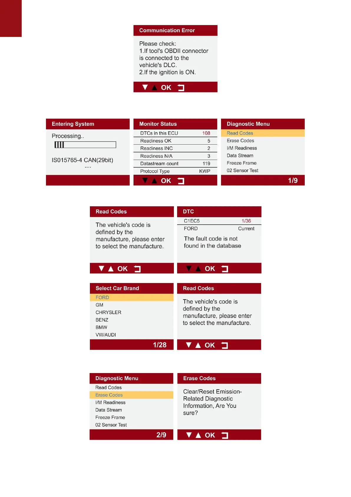 MUCAR CDL20 - Core Diagnostic Functions; System Diagnosis and Function List; Read Diagnostic Trouble Codes (DTCs); Erase Fault Codes