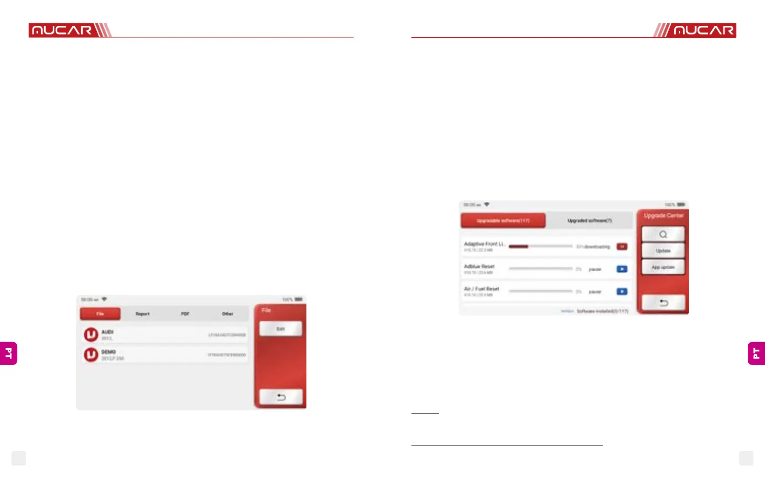 Este módulo permite atualizar o software de diagnóstico e o aplicativo e denir o software