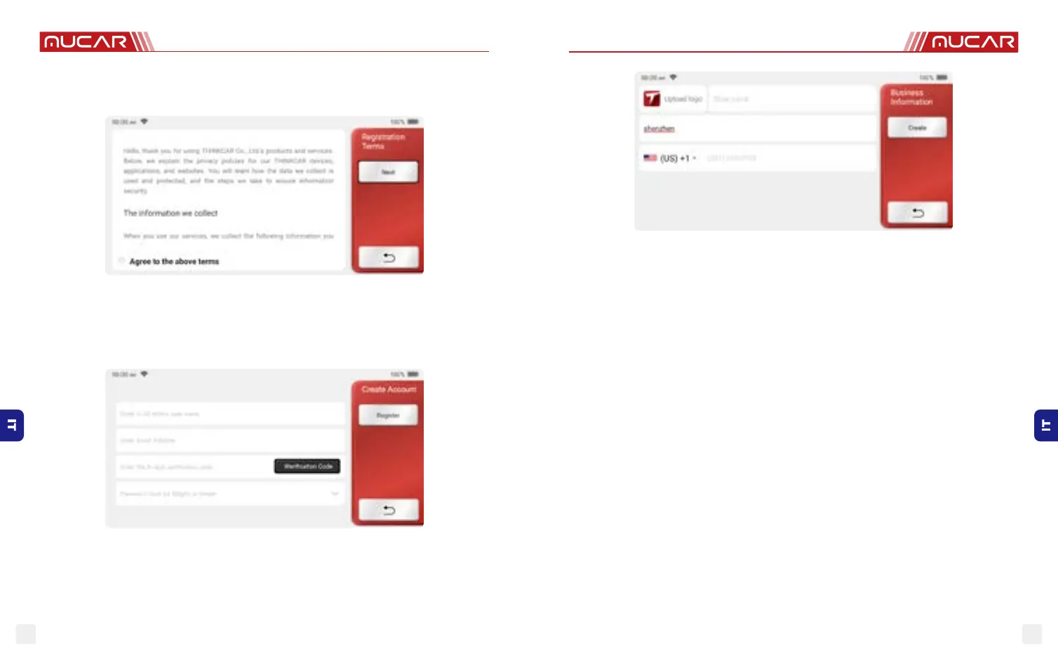 MUCAR CS2 - Codici Diagnostici DI Guasto (DTC); Creare un Account; Digitazione Delle Informazioni Sullofficina Riparazioni; Informazioni Generali